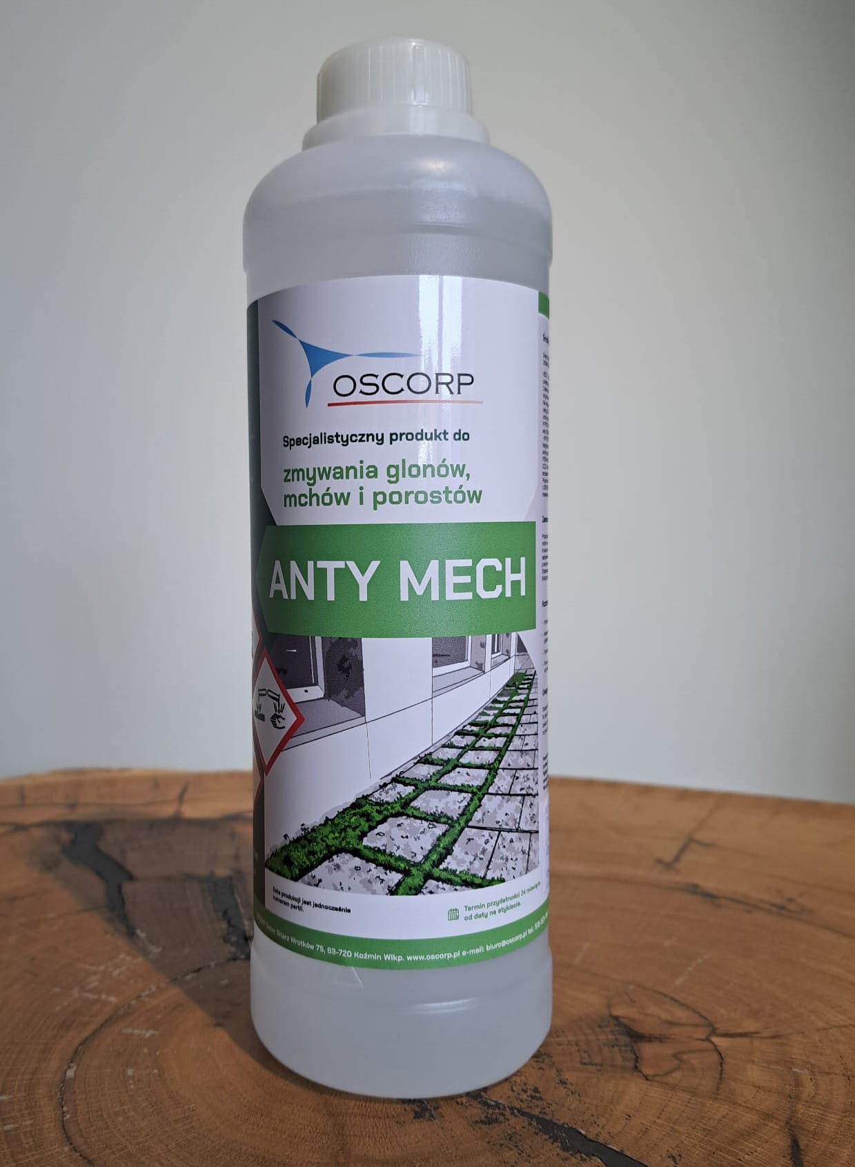 Produkt płynny skoncentrowany do zmywania glonów, mchów i porostów z różnego rodzaju powierzchni (kostki brukowej, dachów, elewacji, płotów, nagrobków)